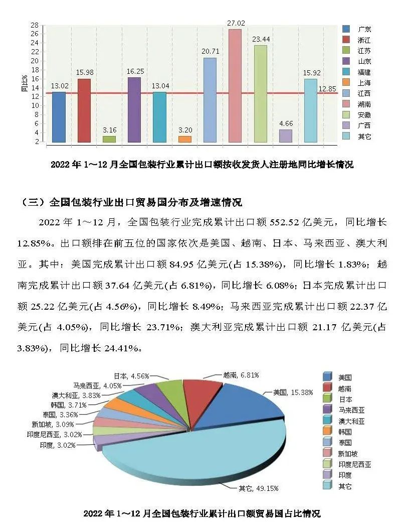 2月底,中國包裝聯(lián)合會發(fā)布了“2022年全國包裝行業(yè)進(jìn)出口概況”。根據(jù)報告顯示,2022年全國包裝行業(yè)完成累計進(jìn)出口總額693.63億美元,同比增長5.78%。行業(yè)對外貿(mào)易保持較大順差。